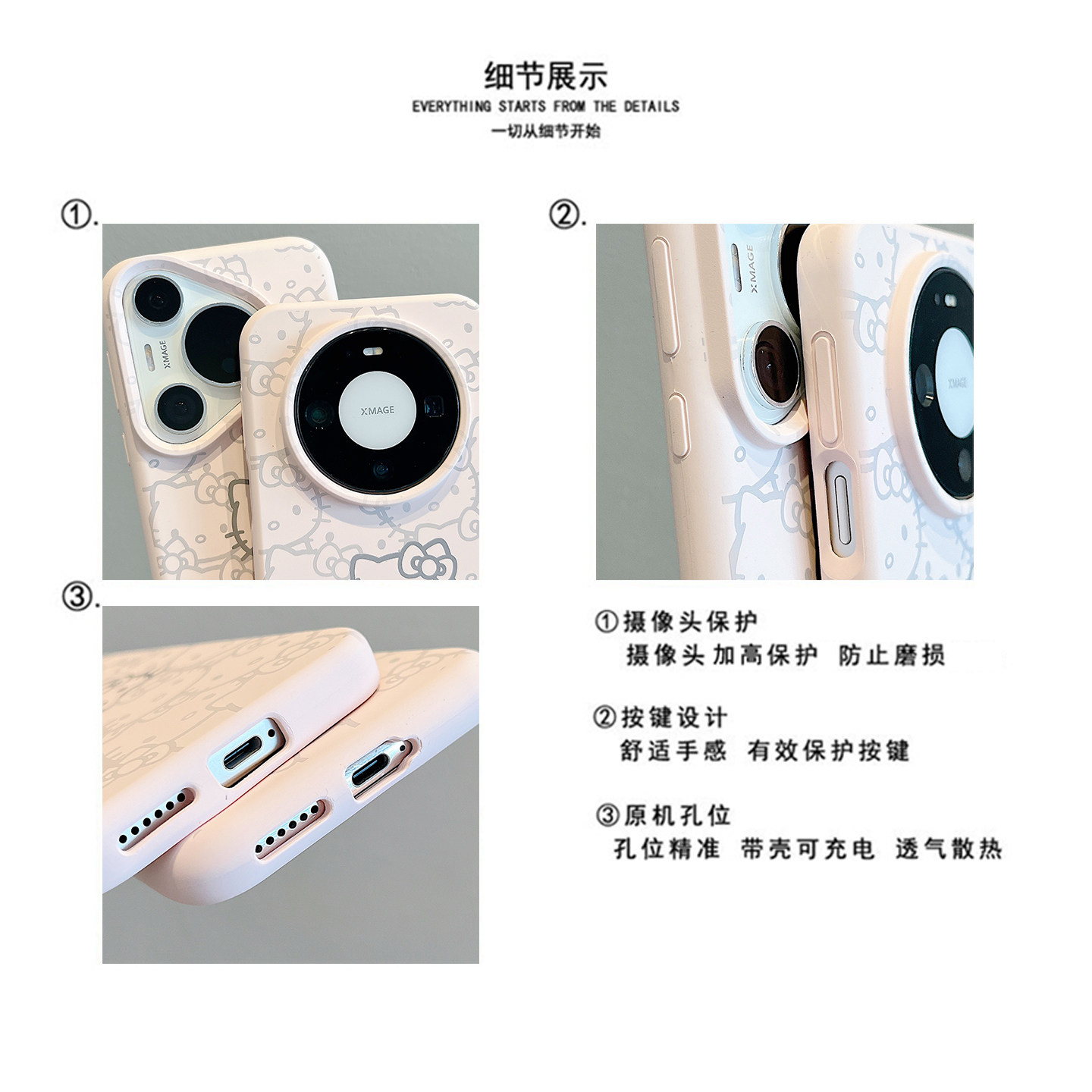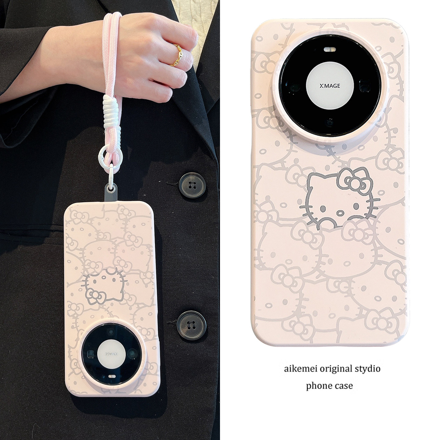 适用华为mate80promax手机壳mate70pro可爱粉底线条猫咪头像mate60pro液态硅胶MT50/40pro挂绳pura80pro+女款