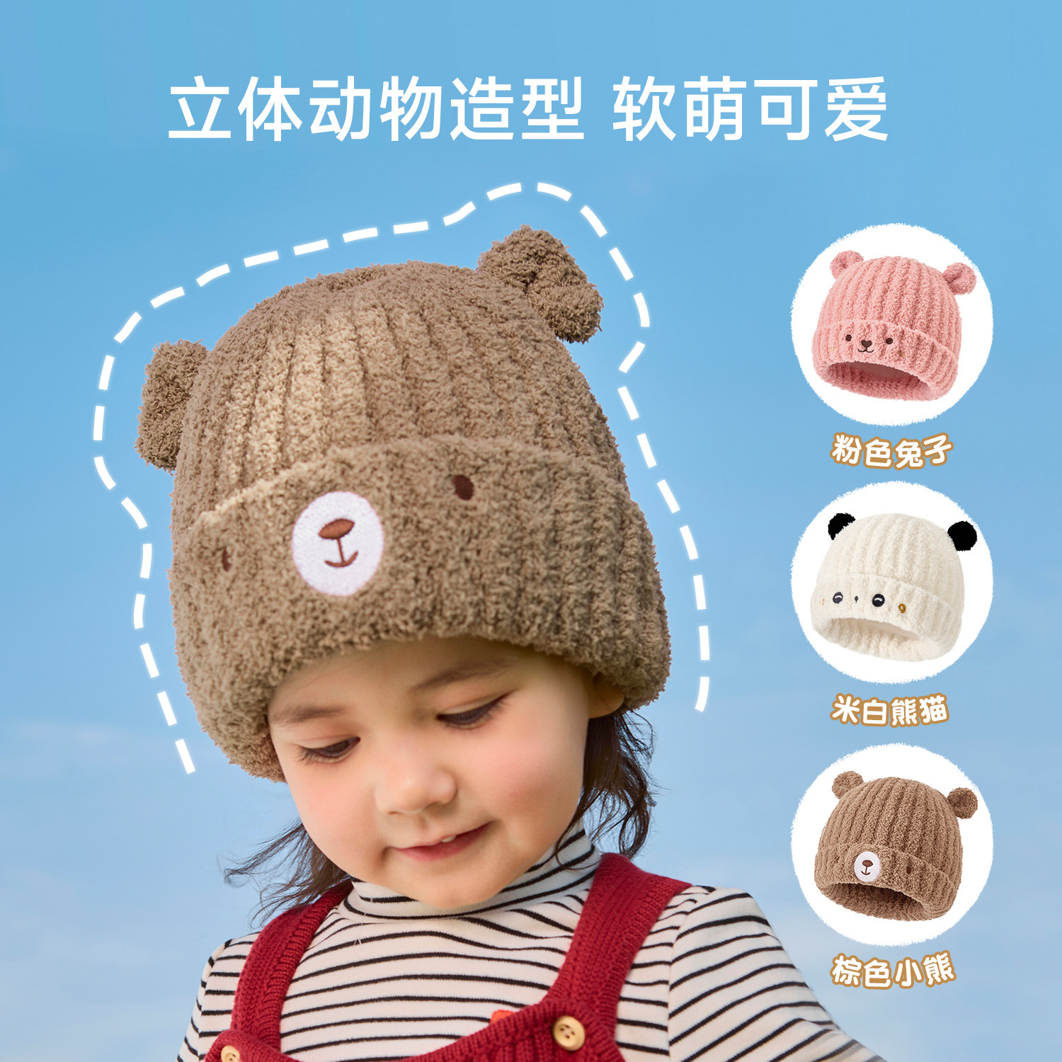 尼多熊婴儿帽子秋冬季宝宝帽子男女款冬季保暖针织毛线帽儿童帽子
