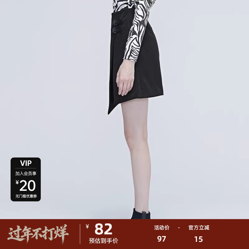【秒杀】sdeer圣迪奥秋搭片拼接短裙黑色裙子秋半身裙S20381309