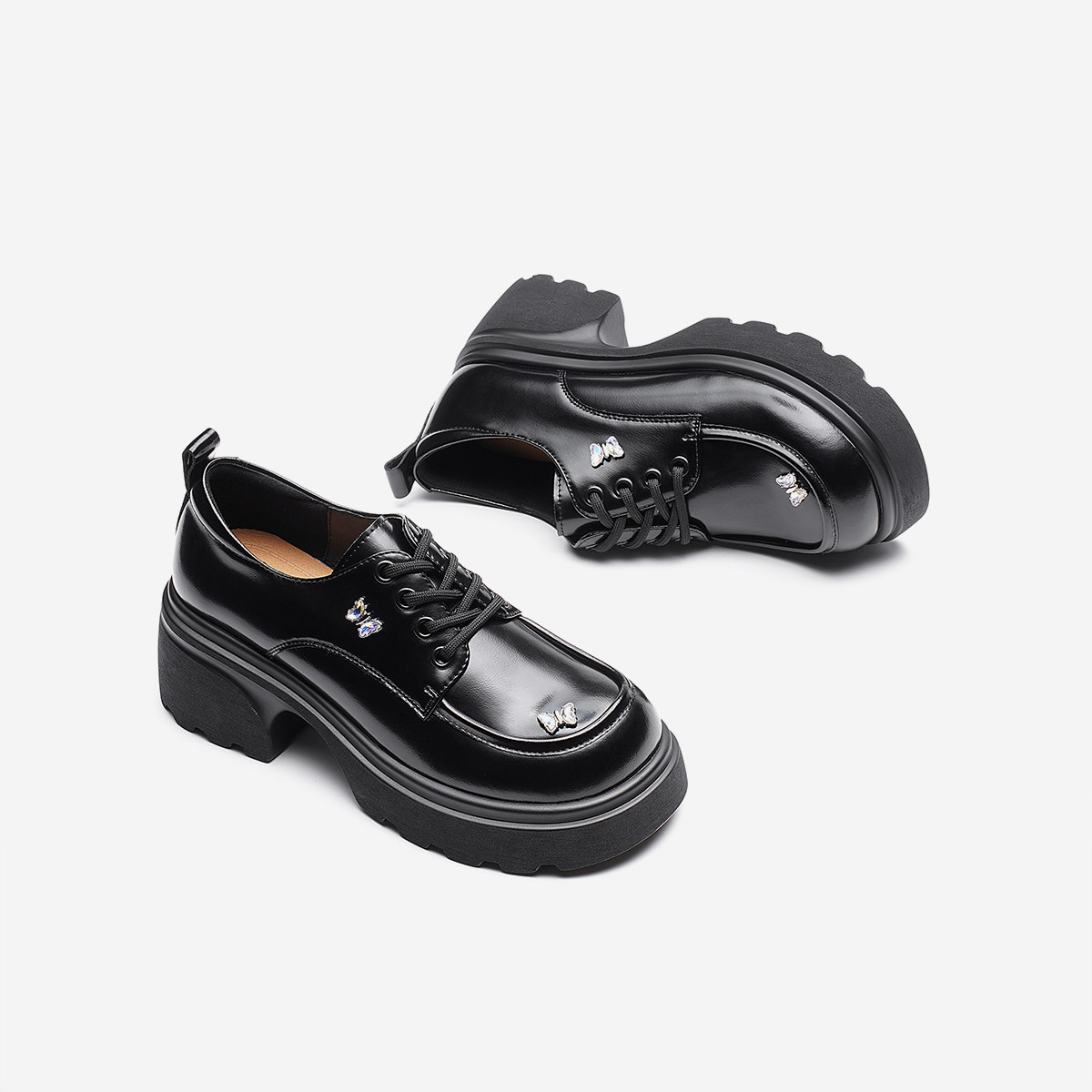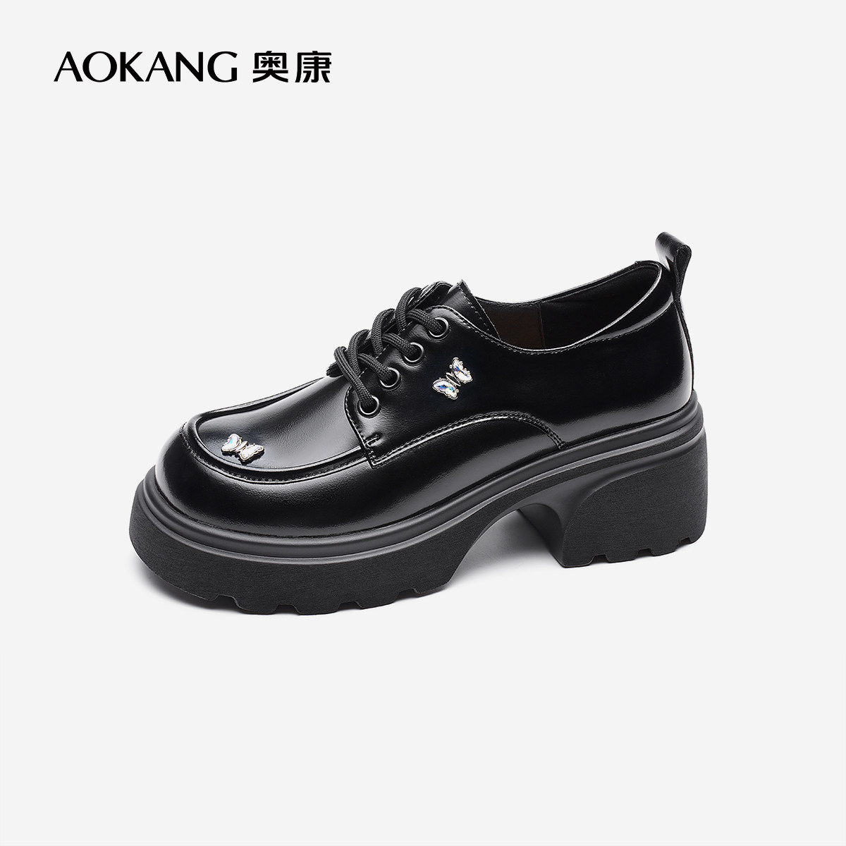 奥康女鞋 春秋松糕底学院风厚底乐福鞋时尚单鞋门店发货