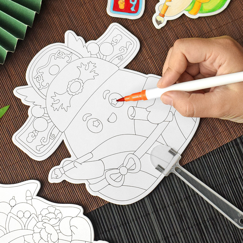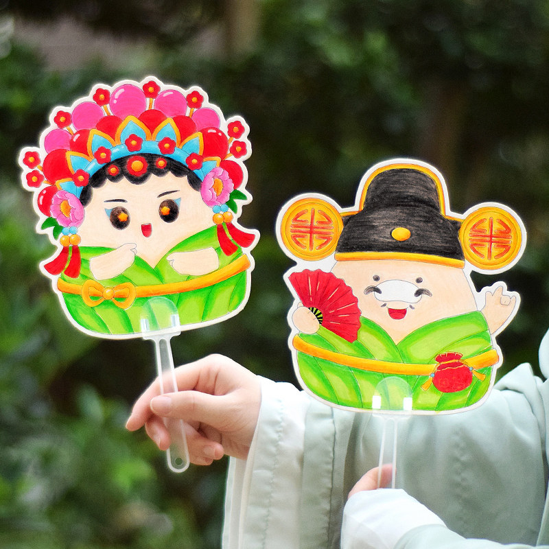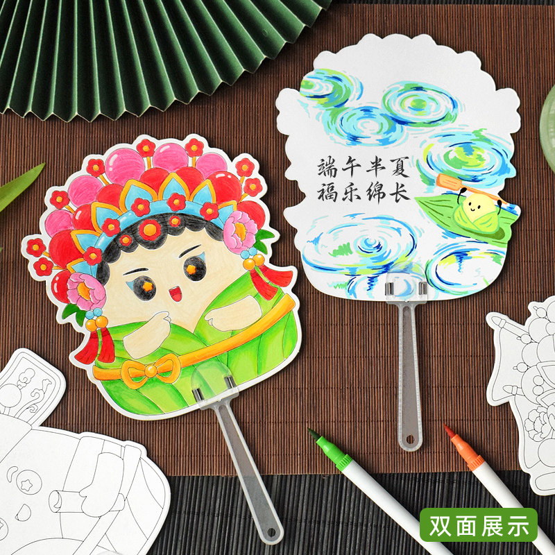 端午节手工diy扇子填色贺卡幼儿园儿童制作团扇卡片材料包小学生手绘传统文化涂鸦粽子划龙舟画画培训班作业