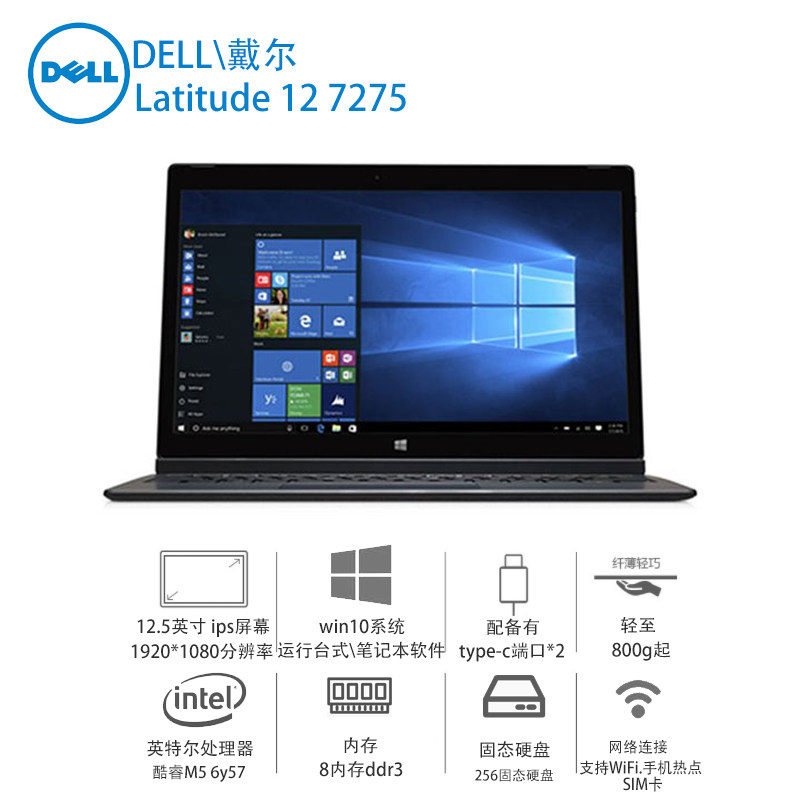 Dell/戴尔7275 8+128G 12寸大屏商务办公炒股win10平板电脑二合一