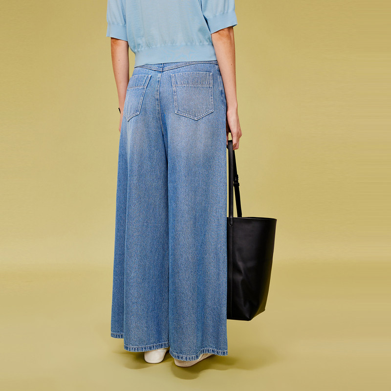 LESS高腰阔腿牛仔裤女复古棉麻休闲宽松拖地长裤子2O3E11830