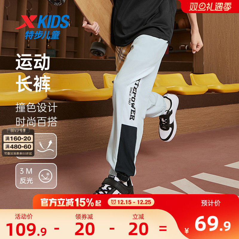 特步童装儿童速干运动裤男童潮酷跑步裤秋冬新款中大童防蚊裤冬装