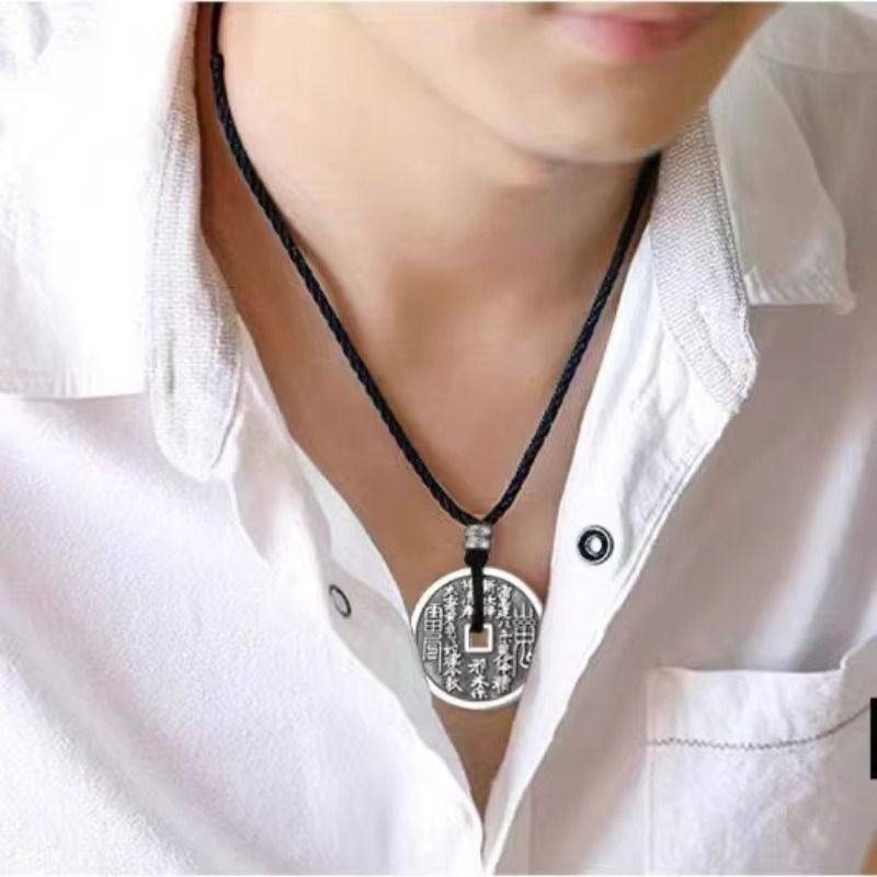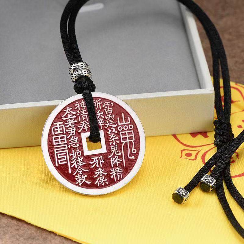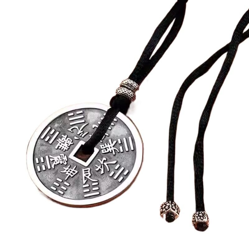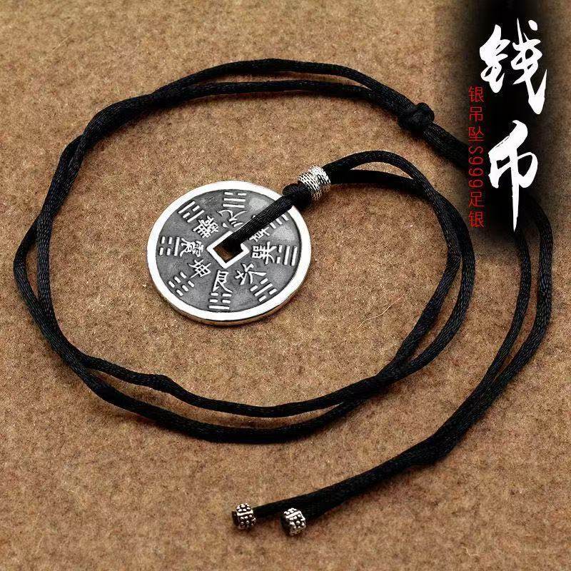 鬼花钱币吊坠纯银项链平安挂坠时尚守护八卦钱币送礼物男女款红绳