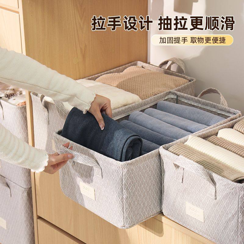 拍1发4衣服收纳筐神器布艺装衣物衣柜分层收纳箱家用框裤子整理盒