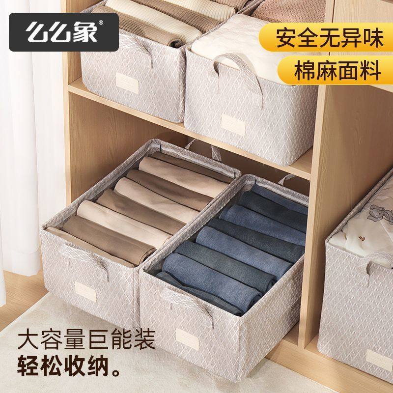 衣服收纳箱家用衣柜分层整理盒放衣物裤子布艺棉麻折叠储物筐神器