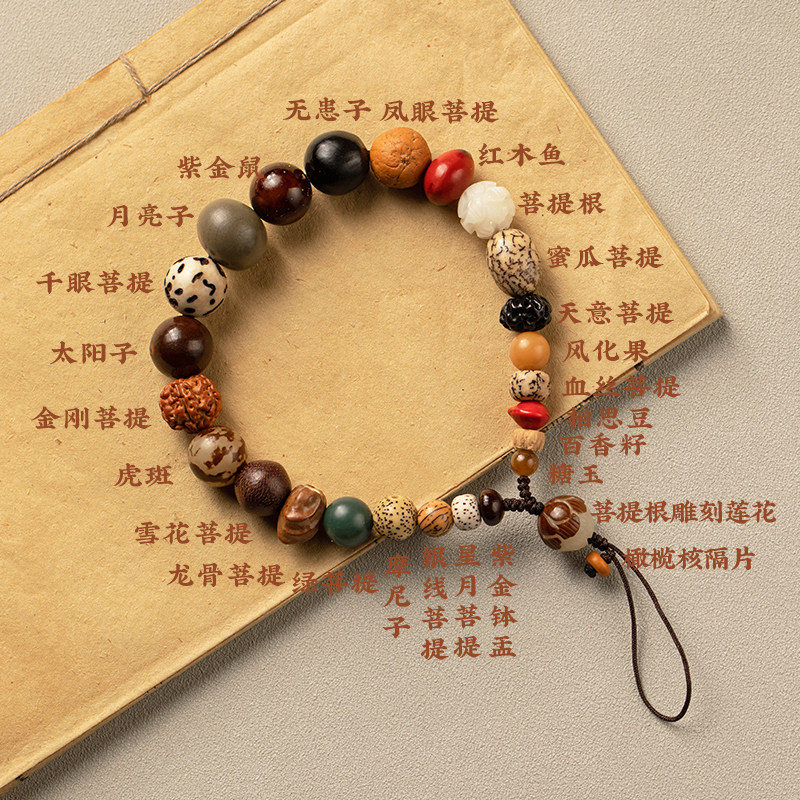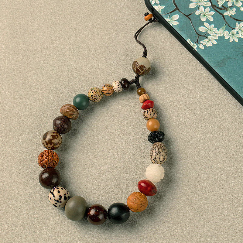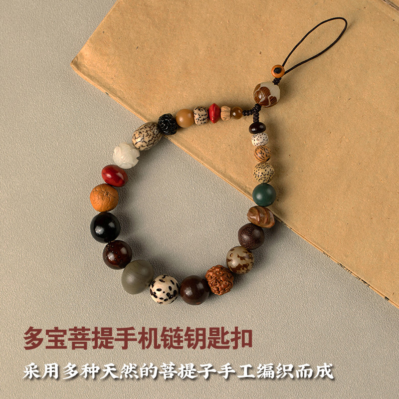 加噜十八子多宝菩提手机链挂绳挂扣中国风短款钥匙链菩提子挂件手机壳挂饰手腕款结实耐用挂饰防丢绳送礼物