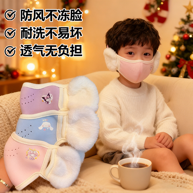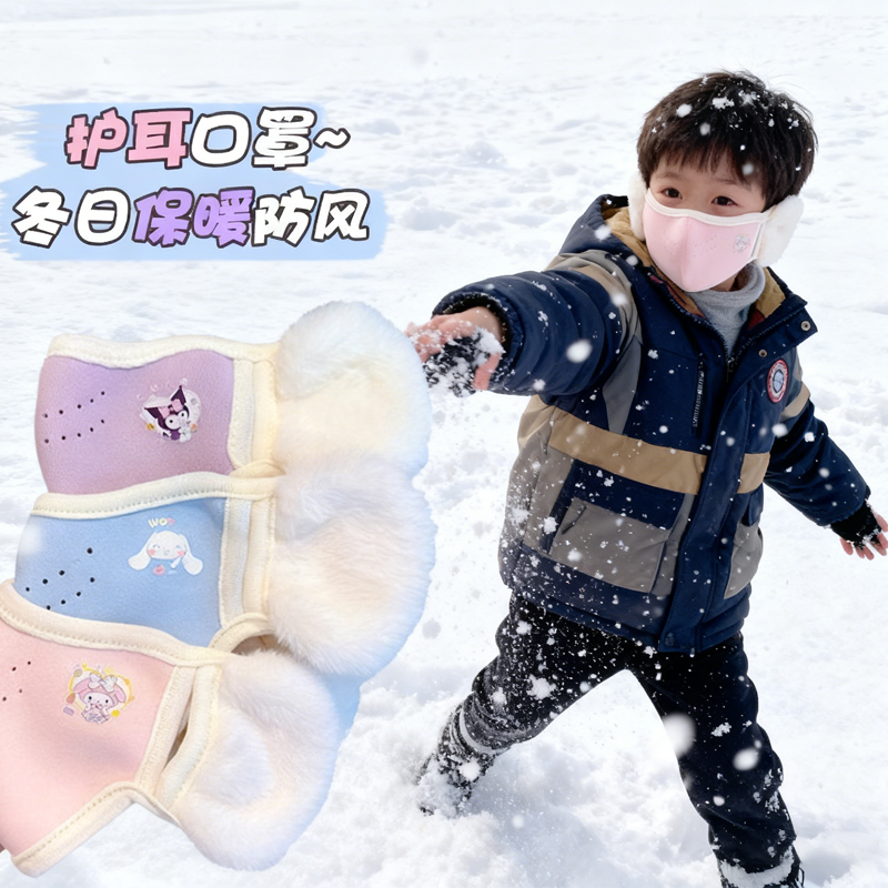 儿童口罩保暖冬天防风防寒纯棉3d立体防冻脸2025新款耳罩二合一