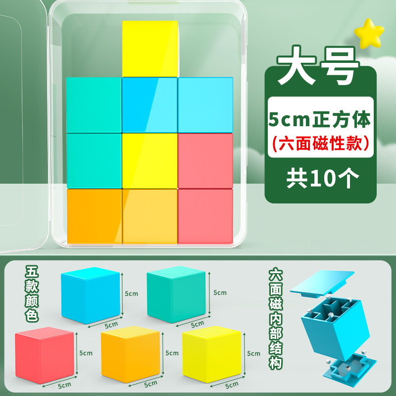5cm六面磁性正方体教具长方体积木小学生三四五年级几何体模型观察物体2cm立方块立体数学磁吸磁铁教学强磁