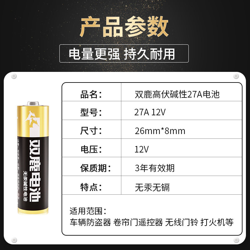 双鹿高伏碱性27A/12V车辆防盗器无线门铃卷帘门闸门遥控器电池官方旗舰店正品