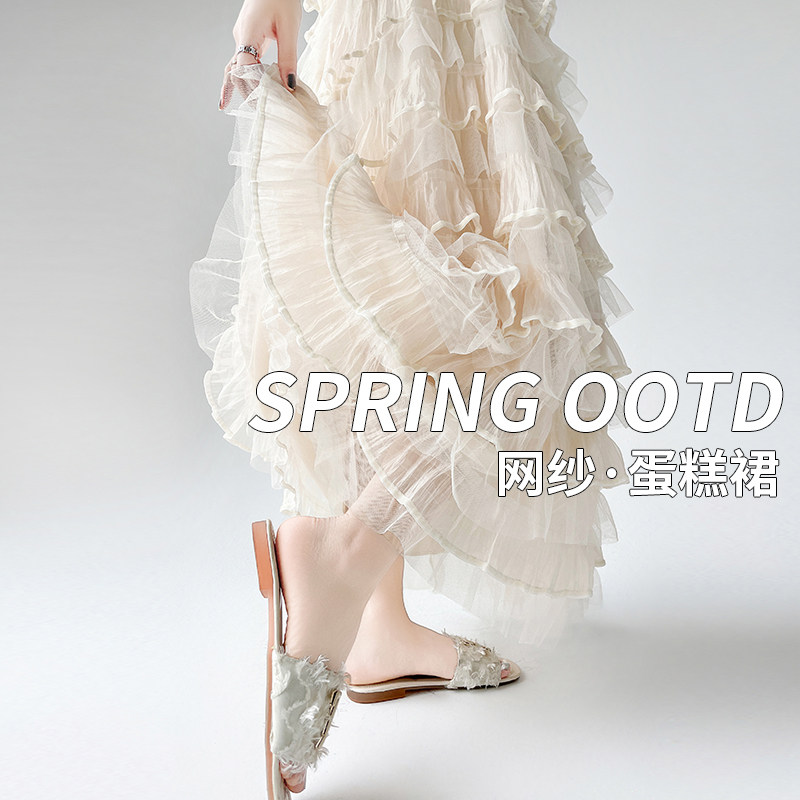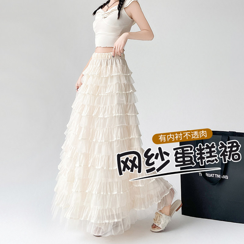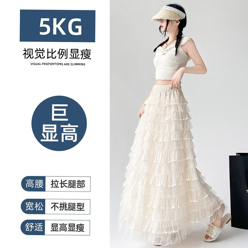 NOME(服饰)蓬蓬蛋糕半身裙女夏季高腰a字荷叶边小个子百褶裙子