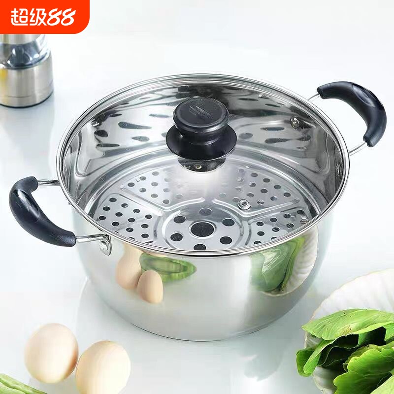 九阳蒸锅家用蒸煮炖锅不锈钢食品级蒸笼汤锅加厚电磁炉燃气灶专用