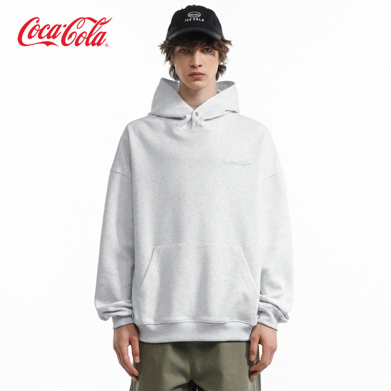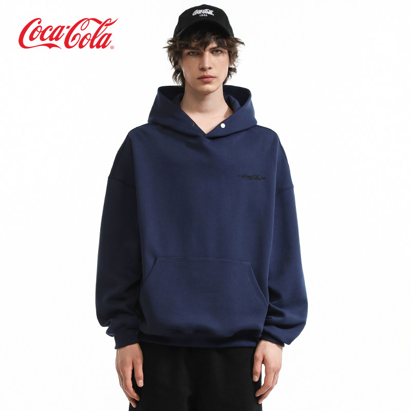 Coca-Cola/可口可乐男女同款贴布刺绣logo重磅春秋款落肩连帽卫衣