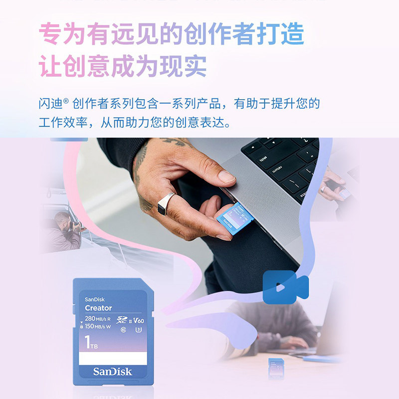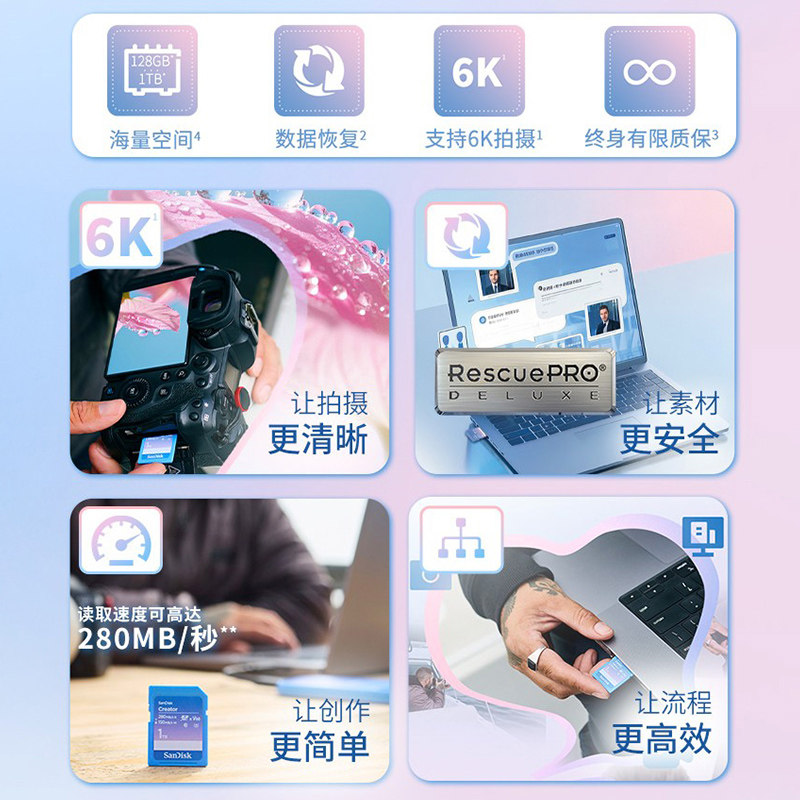 闪迪创作者SD内存卡128G 6K高清相机内存卡256g佳能索尼相机单反
