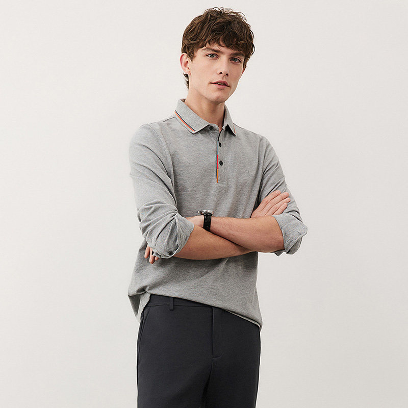 [纯棉]Navigare意大利小帆船灰色长袖polo衫男春季休闲翻领t恤