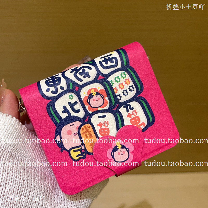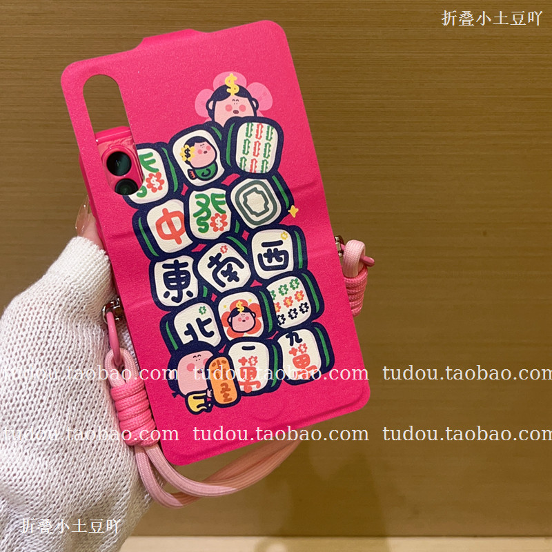 新品麻将绘本笔记本适用华为purax手机壳全包硅胶novaflips折叠保护套mix手提挂绳pocket2斜挎zflip7/6防摔女