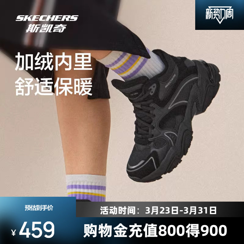 斯凯奇复古机甲鞋秋女子拼色高帮加绒老爹鞋时尚休闲运动鞋