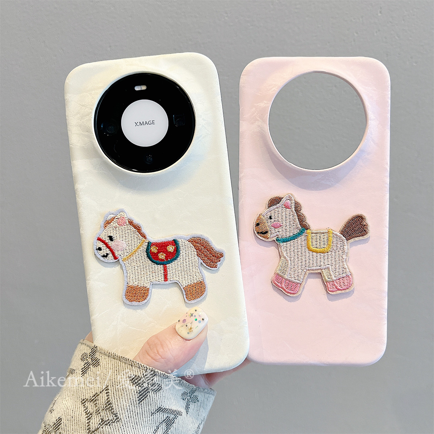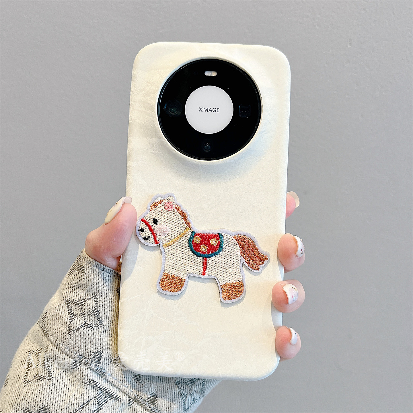 适用华为mate80promax手机壳秋冬新款卡通可爱刺绣小马Mate7060pro纯色雪山纹mate70半包保护pura80防摔男女