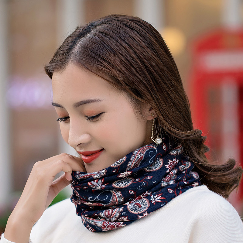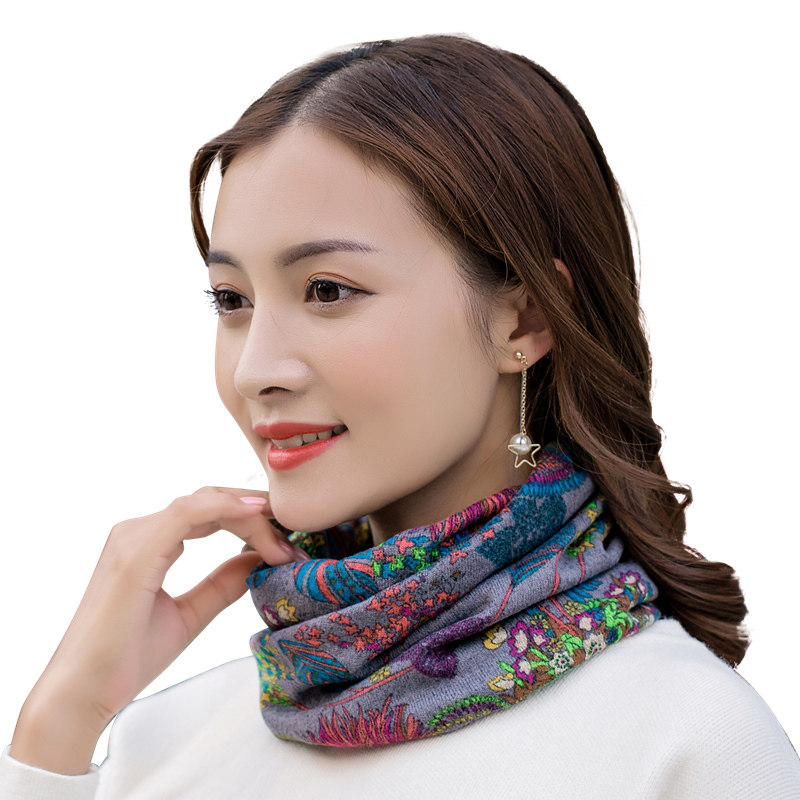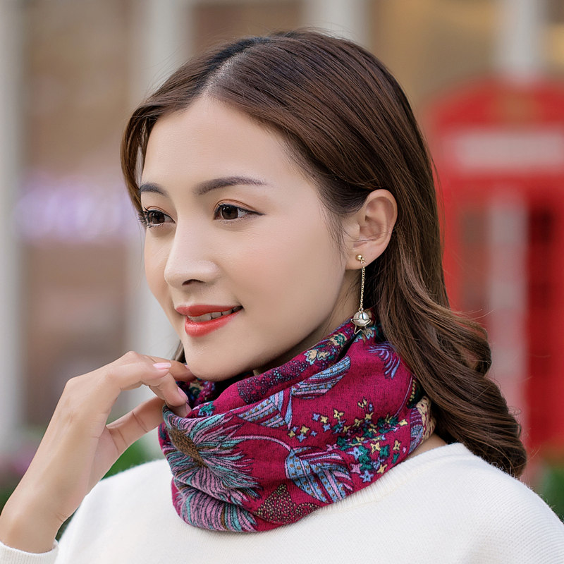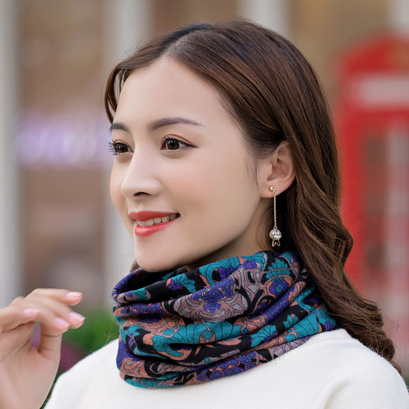 带带鱼秋冬女士民族风花朵围脖两用户外女韩版潮防风保暖脖套