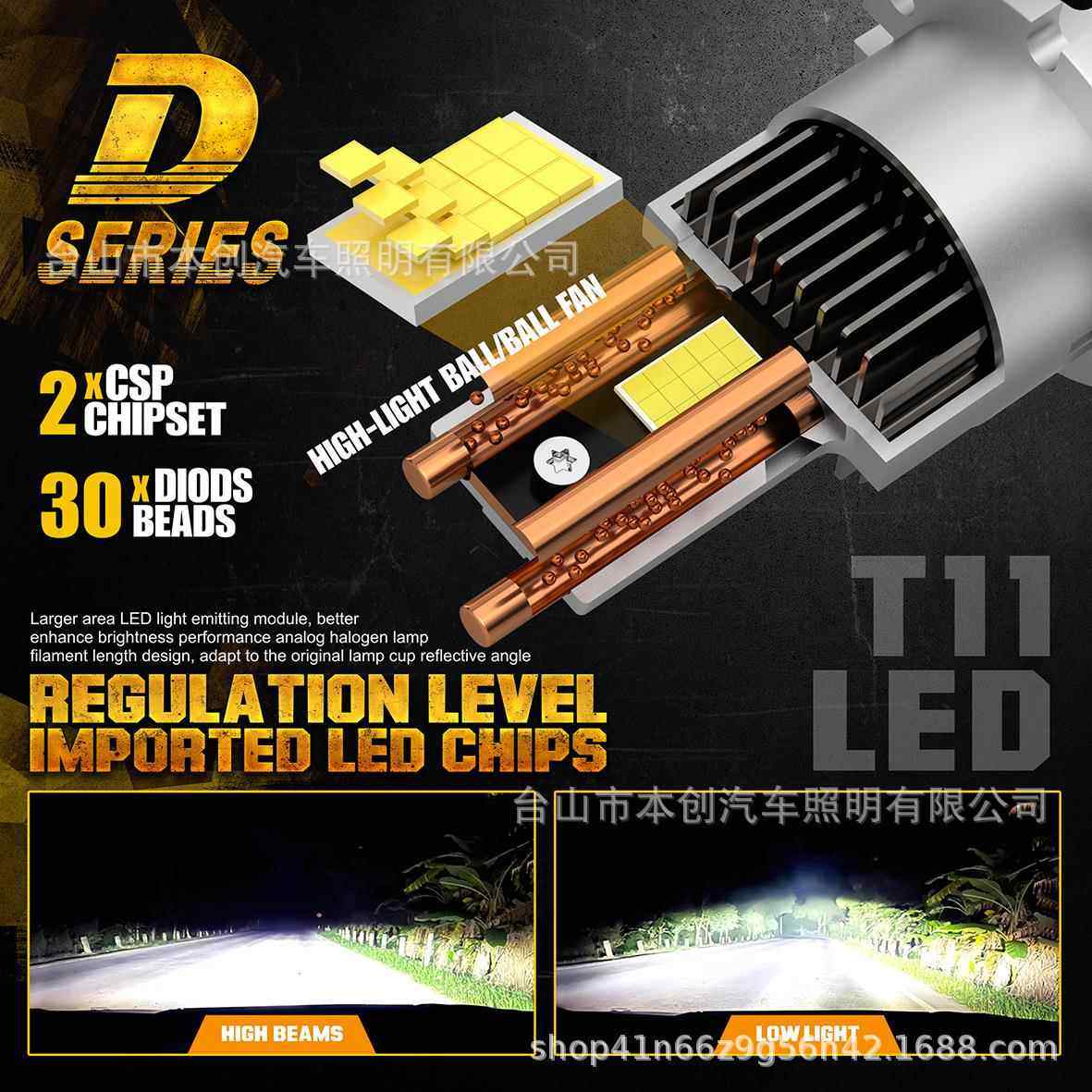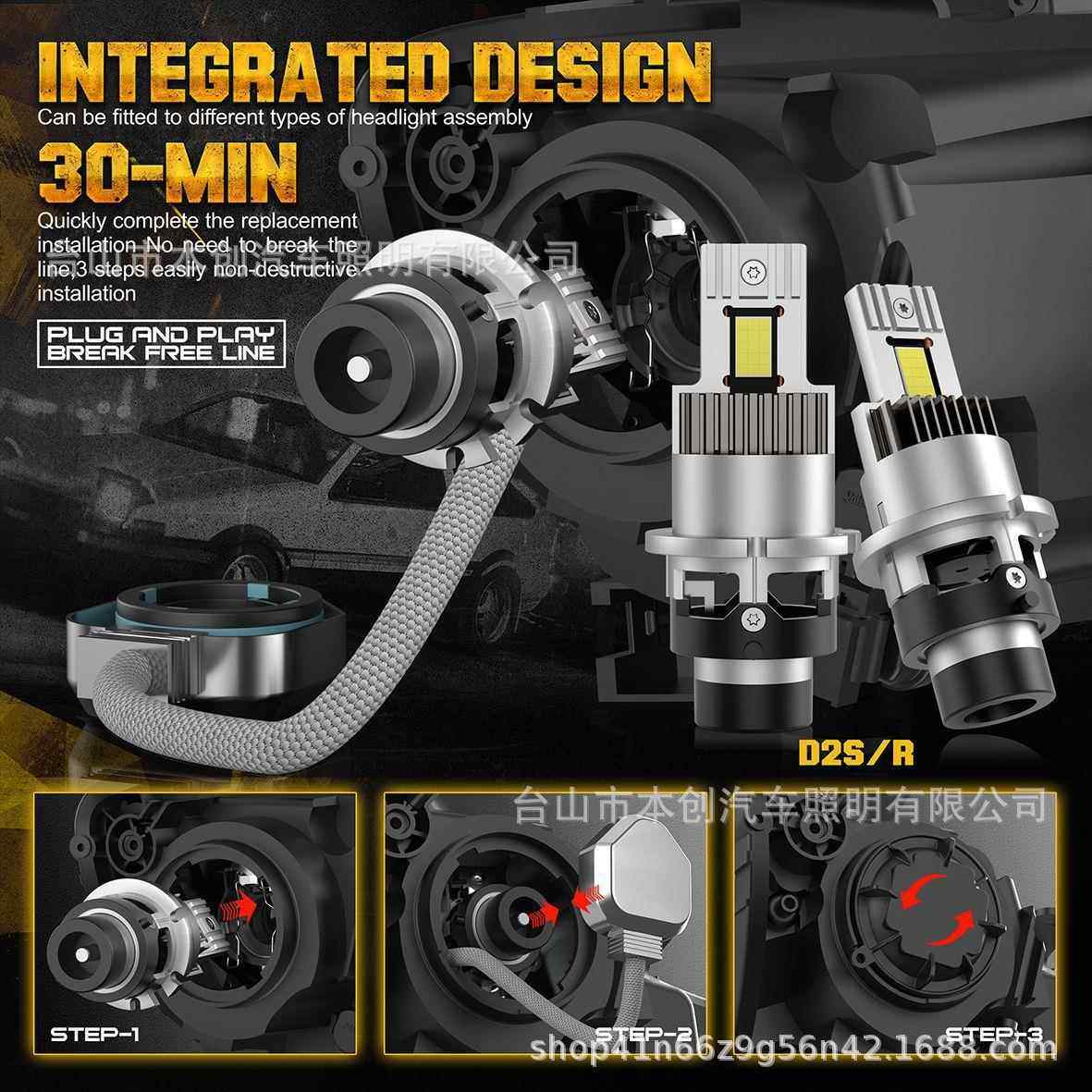 跨境热销Y12高亮D2S聚光直插一体式1:1原车led灯D4S改装汽车大灯