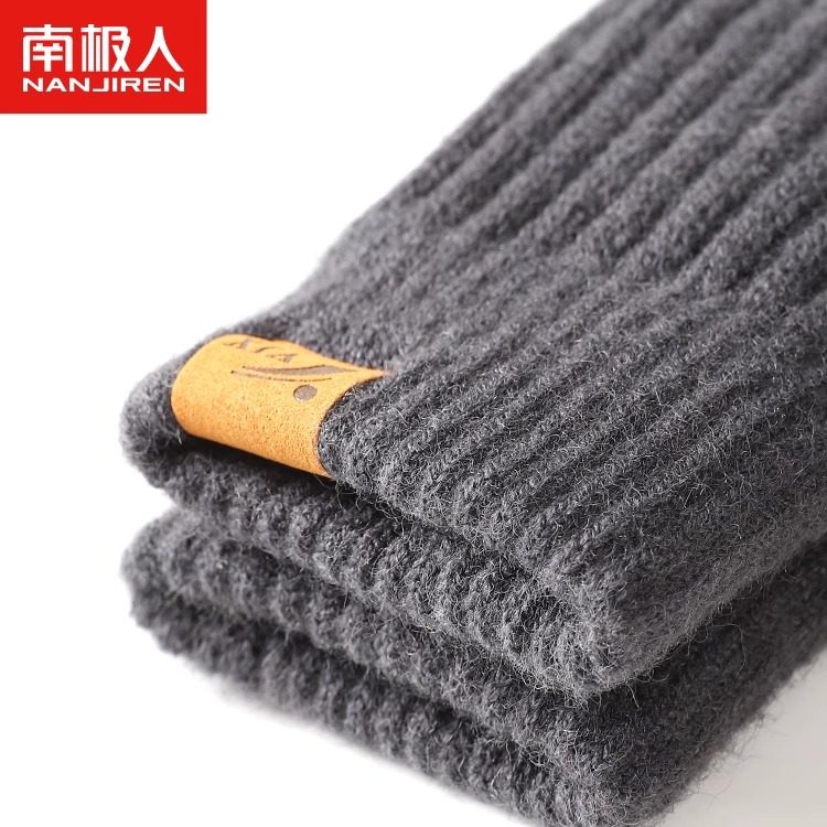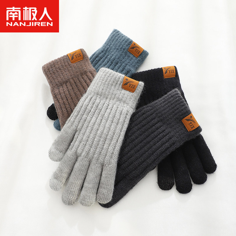 南极人保暖毛线手套男冬季户外保暖触屏加厚绒针织防寒骑行手套A