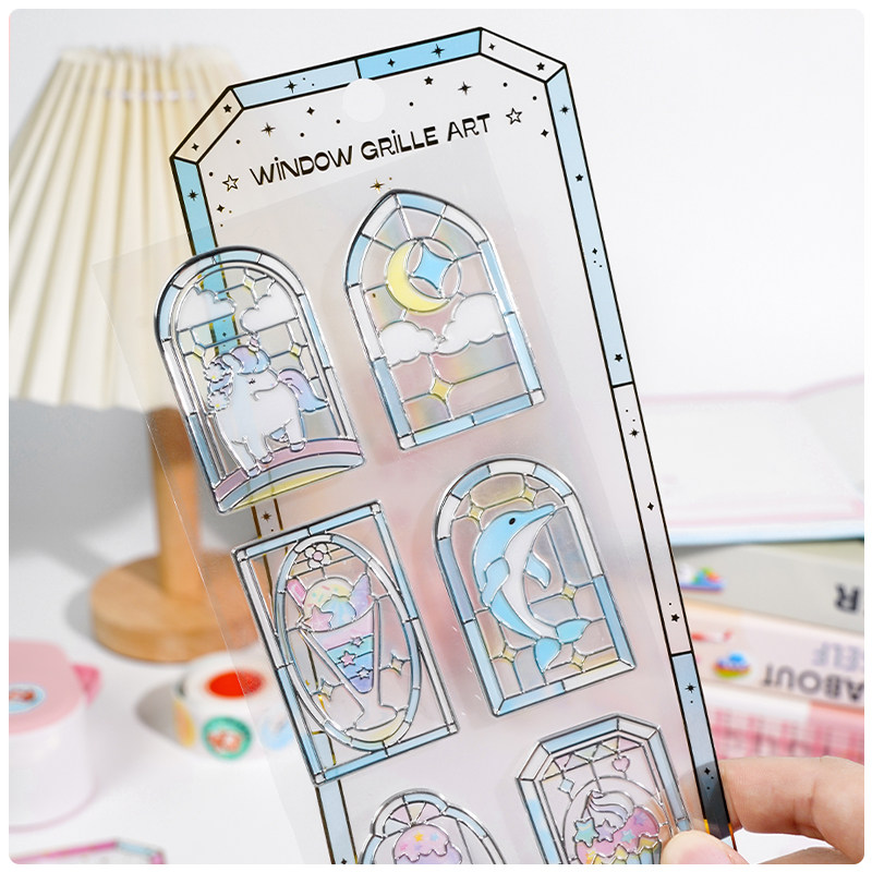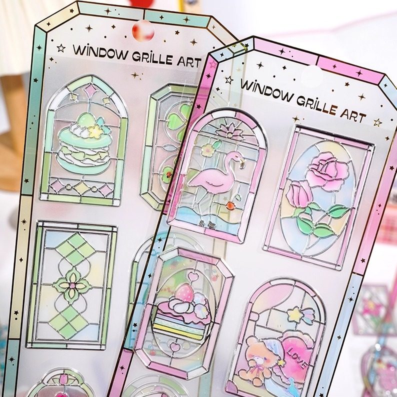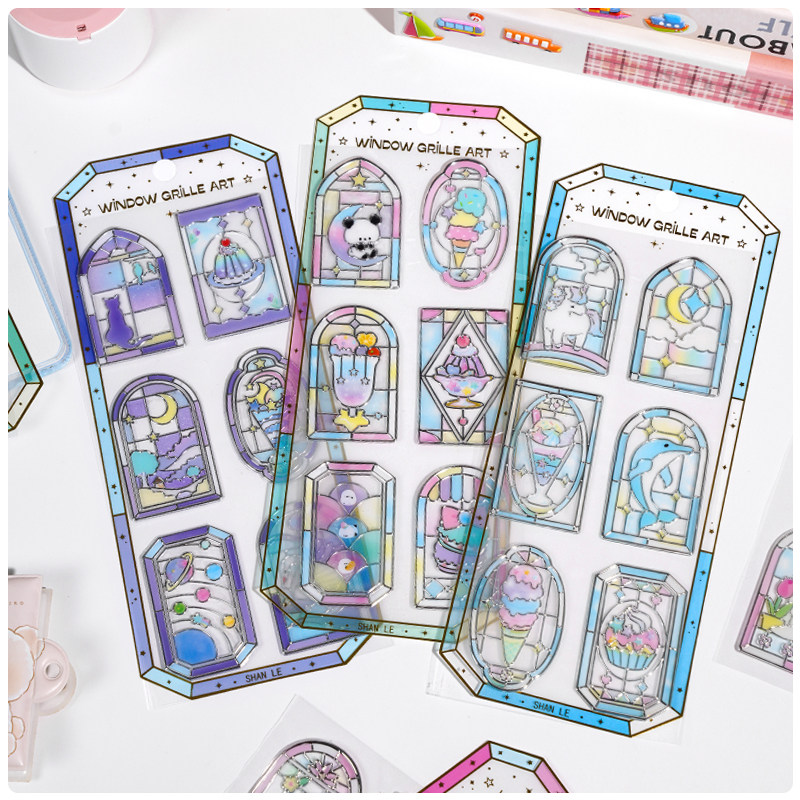 日系谷美琉璃窗花贴纸少女心炫彩卡通手账本手机小卡相册装饰贴画