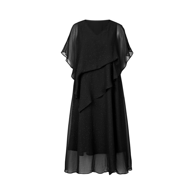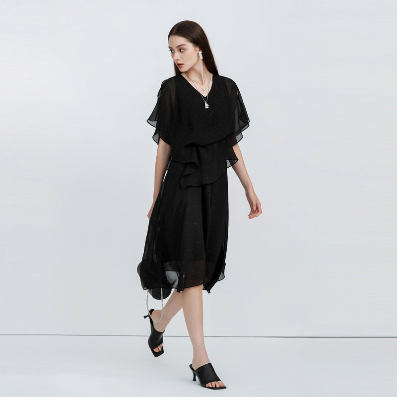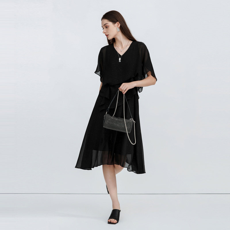 V领连衣裙 露肩设计 雪纺质地