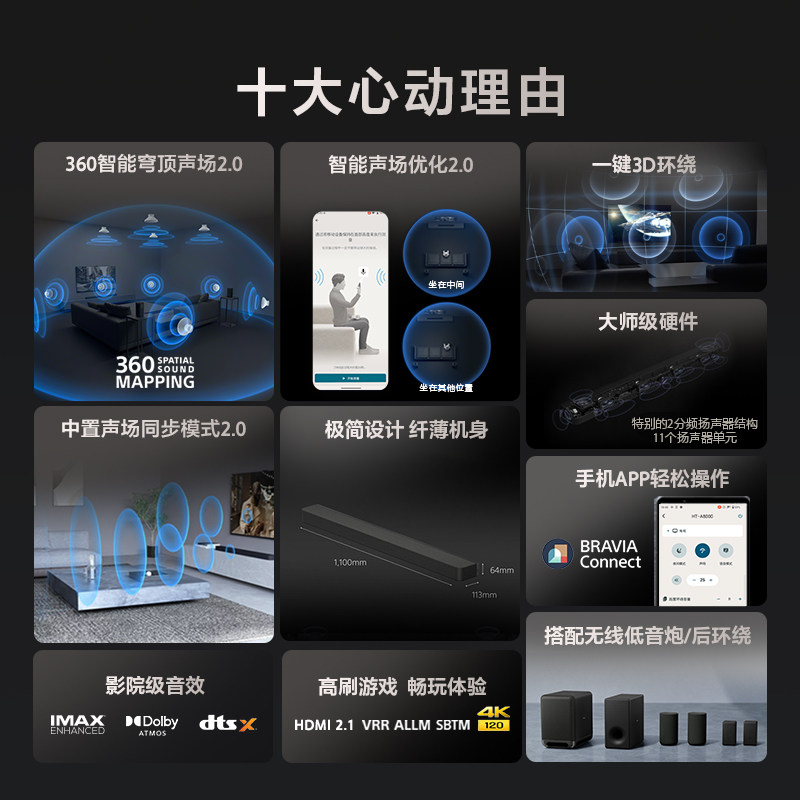 索尼HT-A8000全景声回音壁 360智能穹顶4K/120Hz家庭影院国家补贴