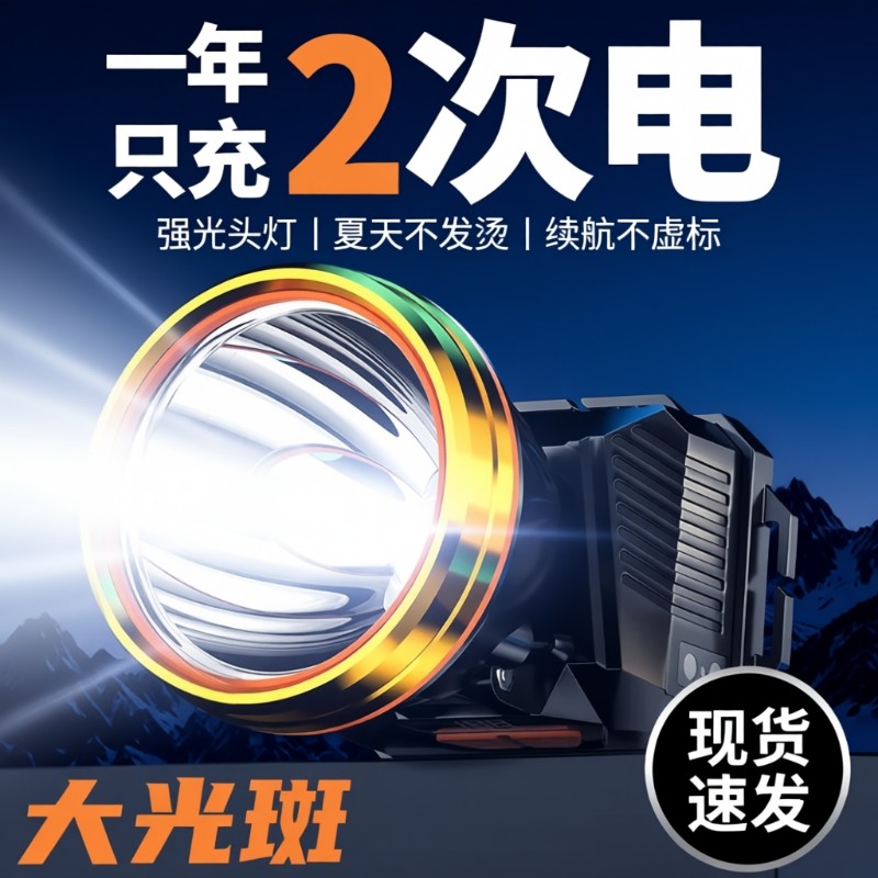 头灯2025新款强光充电超亮超长续航户外头戴式手电筒钓鱼专用矿灯