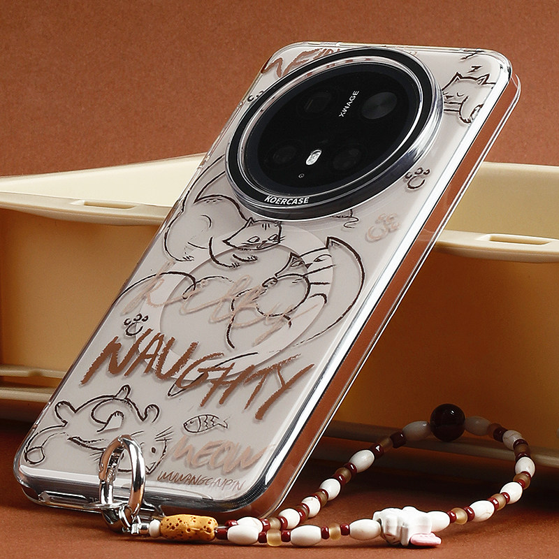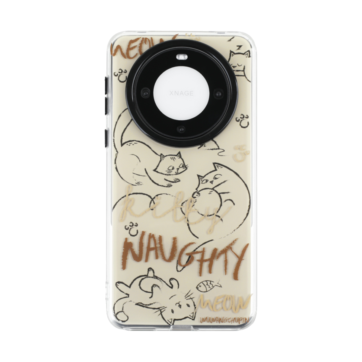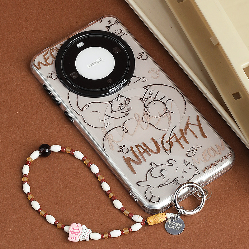 keerke 慵懒小猫咪原创意复古设计情侣少女全包手机保护壳适用华为mate70亮面60pro涂鸦60pro+保护套可爱有趣