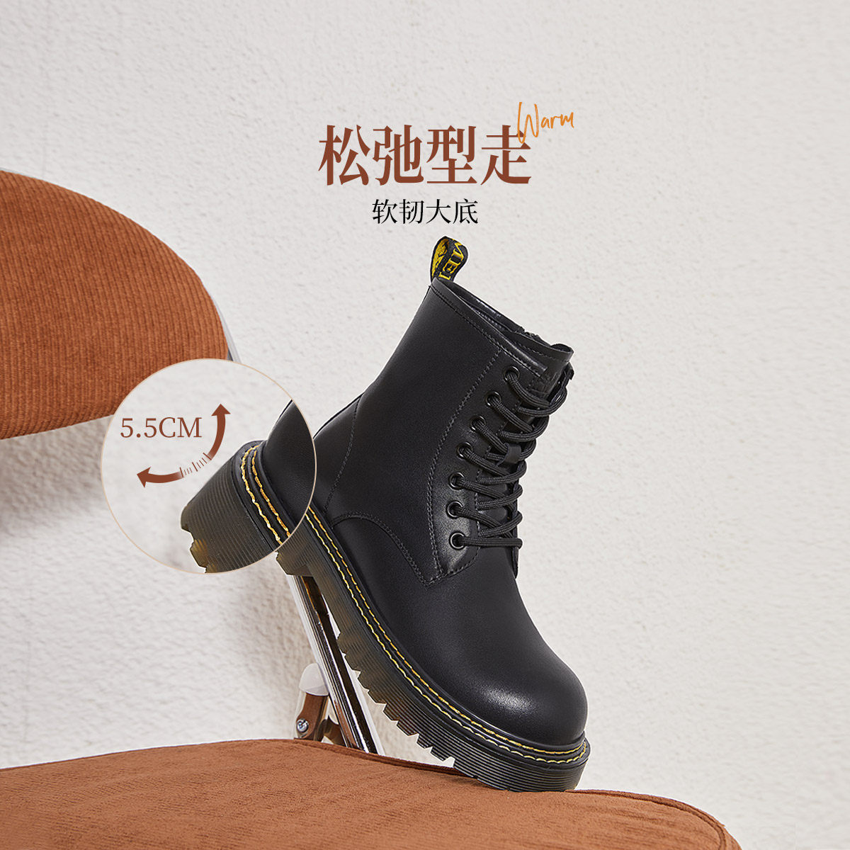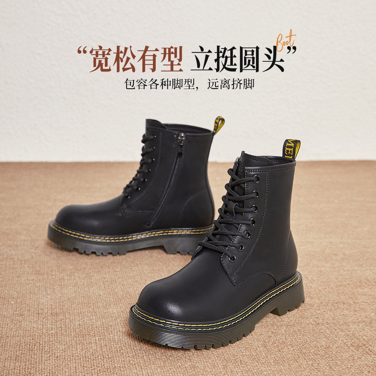 骆驼女鞋2025秋冬新款时装靴英伦风加绒短靴时尚厚底显高马丁靴
