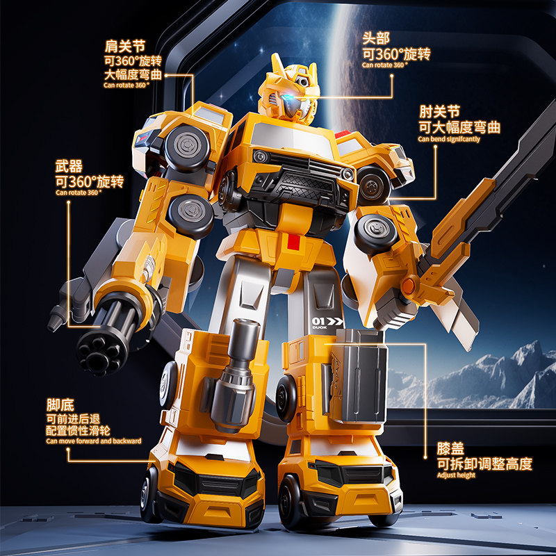 变形玩具5男孩子工程大黄汽车机器人手办模型6金刚蜂男童3儿童4