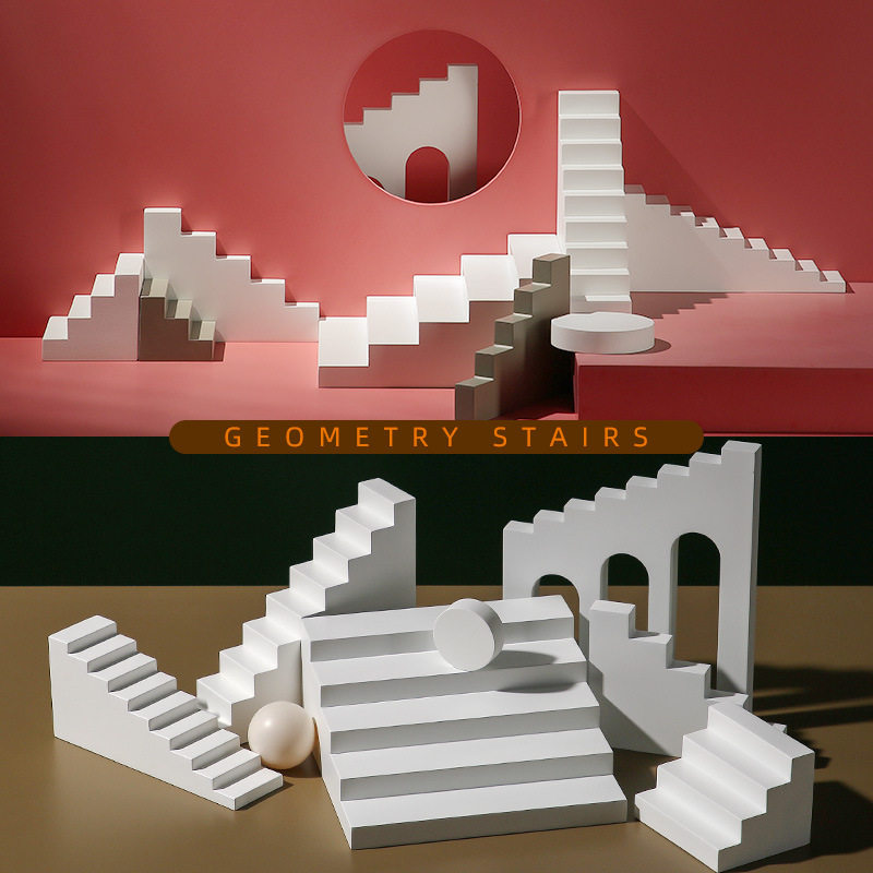 石膏几何体小楼梯拍摄台阶梯摆件创意白色家居摄影拍摄背景空间