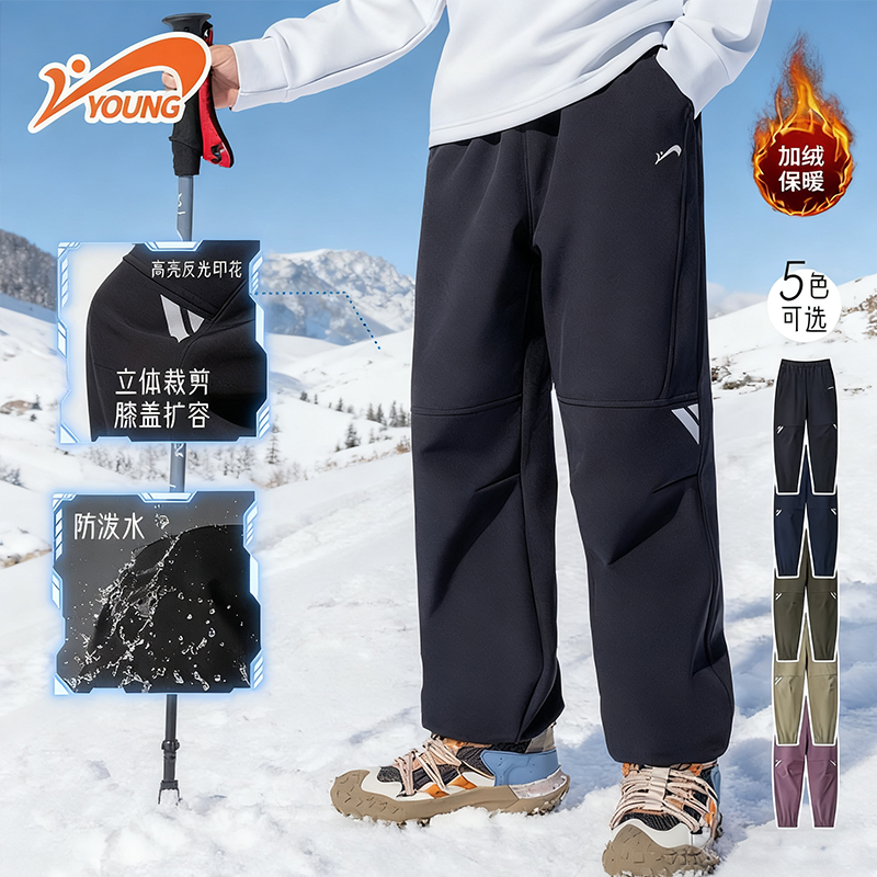 贵人鸟男童加绒裤子儿童加厚一体绒长裤2025新款冬季工装裤冲锋裤