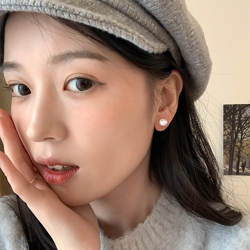 s925纯银天然淡水珍珠耳钉扁圆韩国女可爱银饰品耳饰品气质耳环