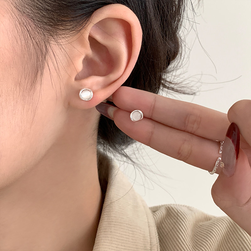 纯银猫眼石耳钉轻奢高级感气质大气独特耳环精致百搭耳饰925银