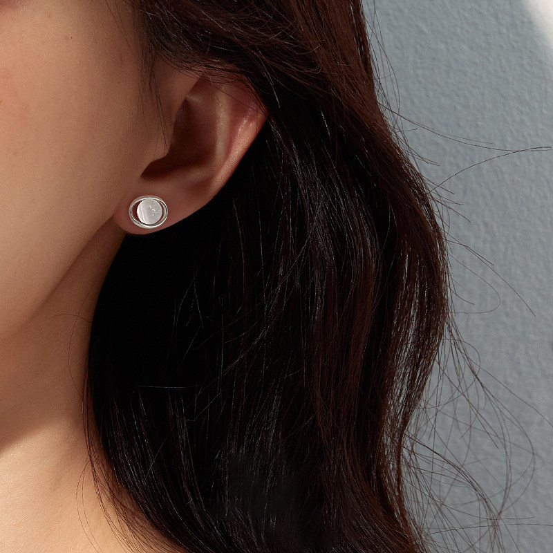 999纯银耳钉女施家珍珠馒头珠耳环扁圆高级气质法式复古轻奢耳饰