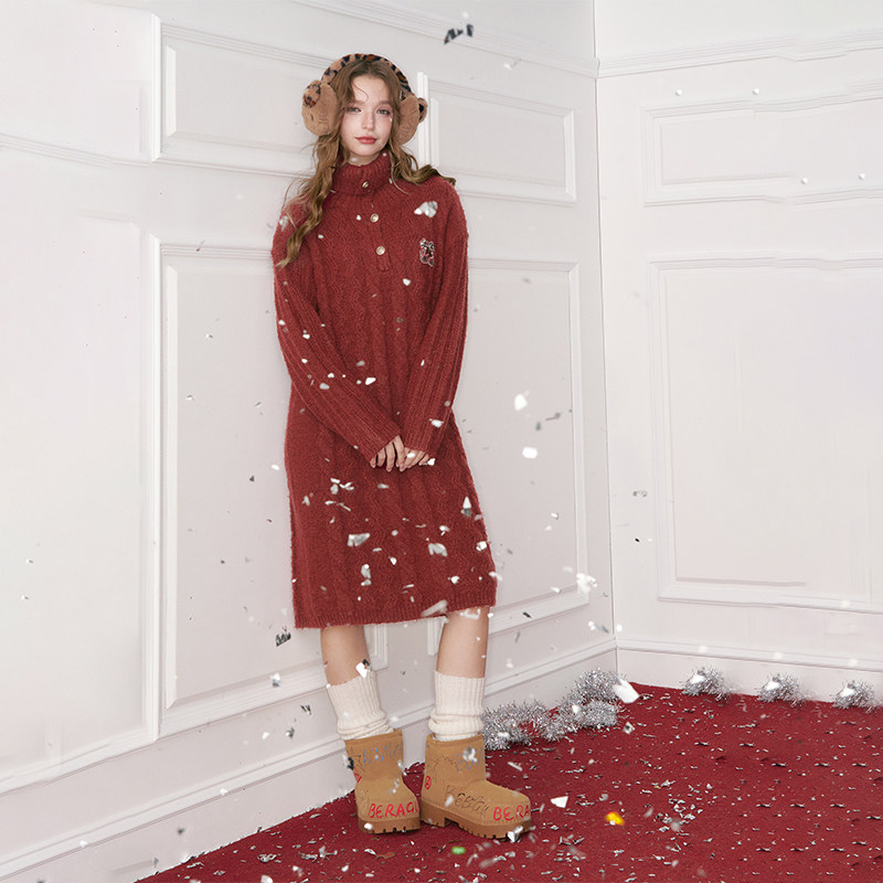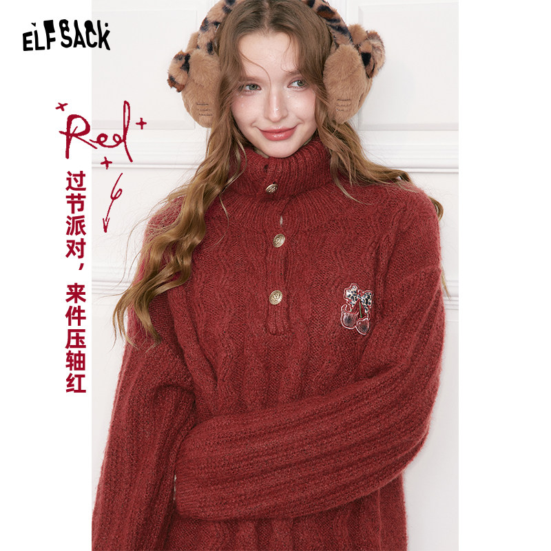 妖精的口袋复古绞花红色毛衣裙连衣裙女2025年冬季新款新年穿搭