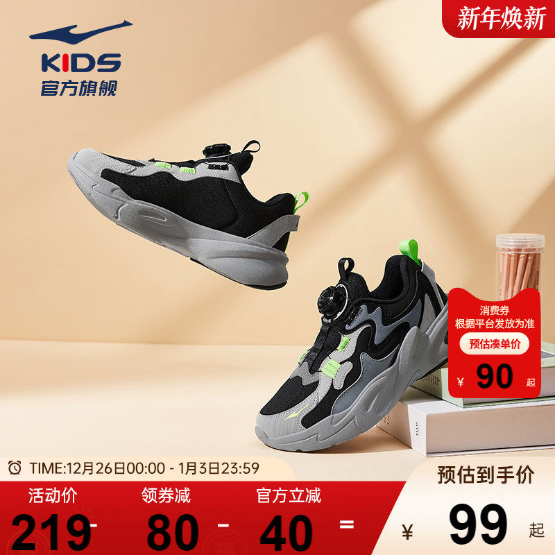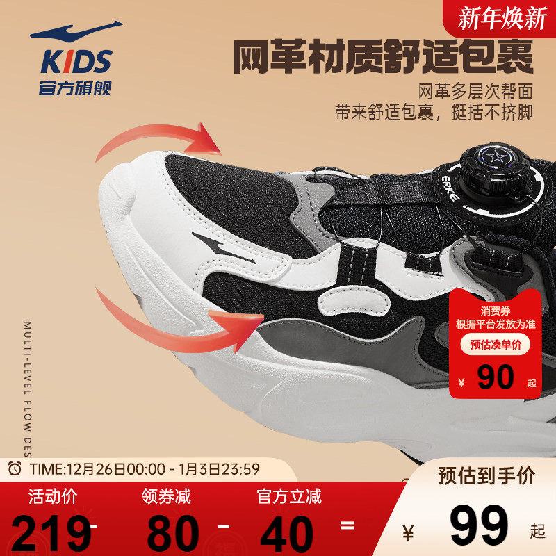 川流2|鸿星尔克童鞋儿童运动鞋男童新款休闲鞋青少年旋钮大童鞋子