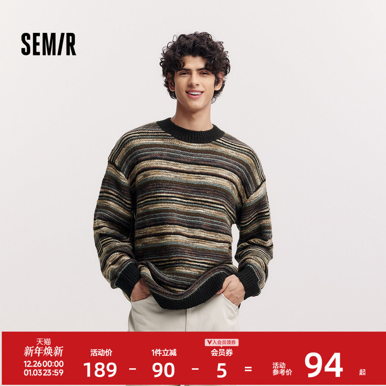 森马毛衫男2024冬新款经典撞色条纹针织衫宽松内搭上衣时尚情侣装