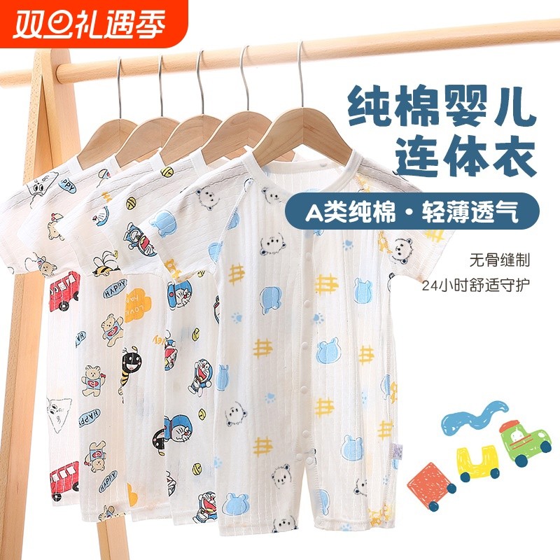 夏季婴儿短袖连体衣哈衣爬服新生宝宝纯棉薄款空调服男童女童外穿