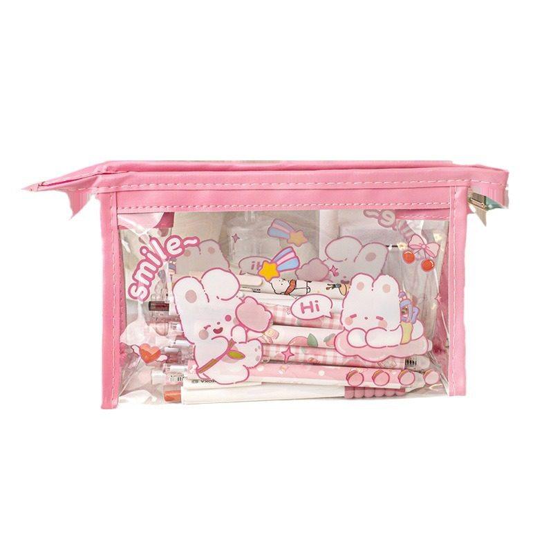 卡通可爱高颜值卡皮巴拉文具收ins风简约小清新熊猫透明笔袋纳袋