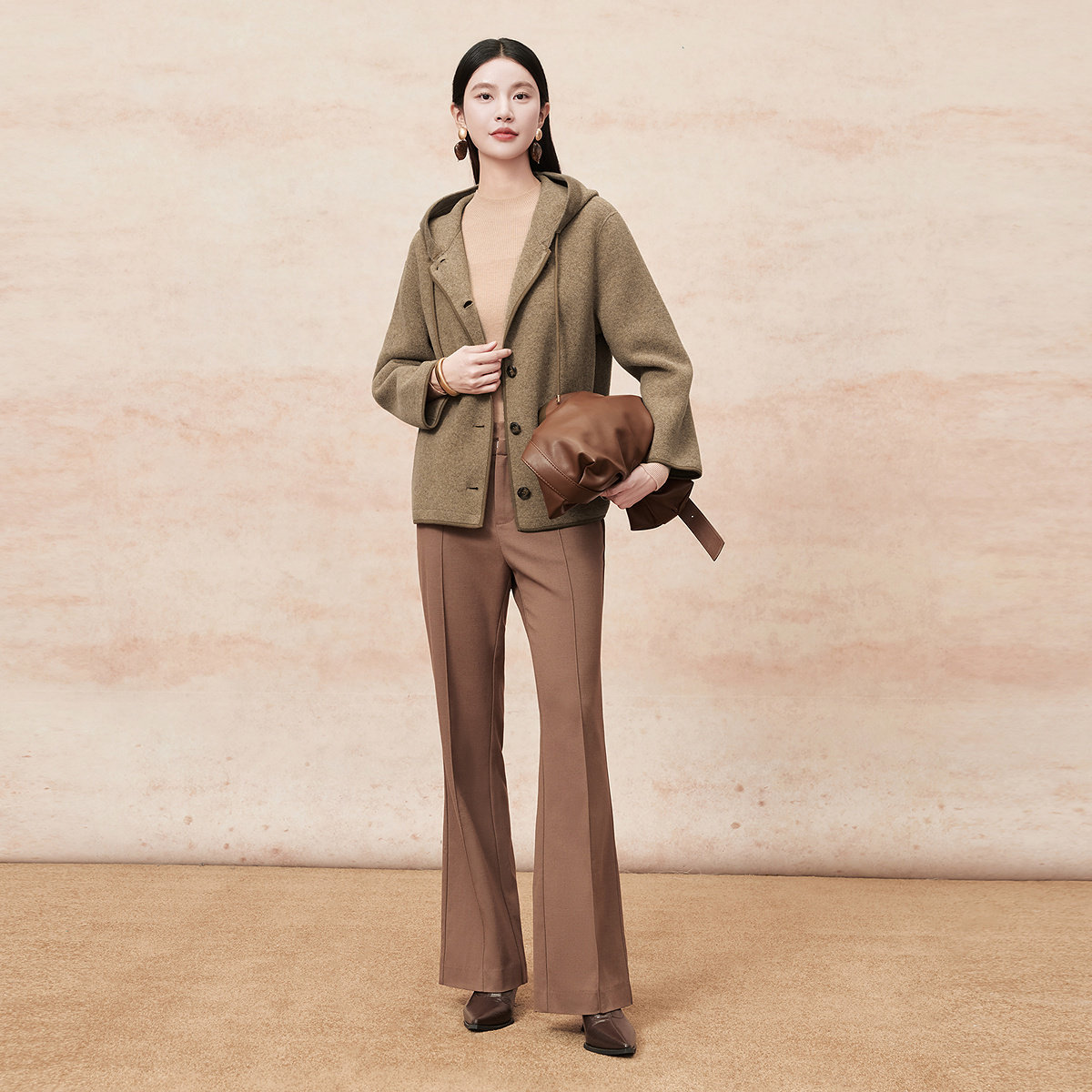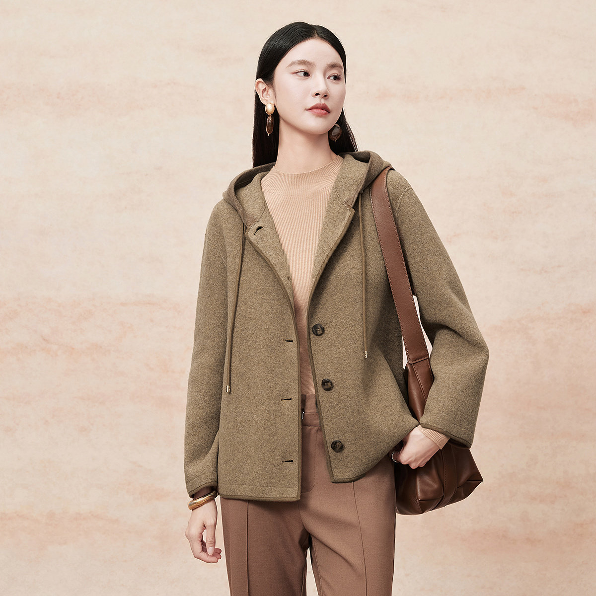 FINITY菲妮迪毛呢大衣2025年冬季新款简约双面呢连帽短款外套女士