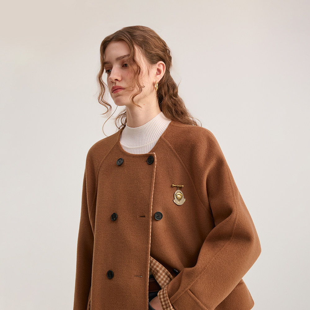 苏丽羊驼高定101801爆款大衣双排扣女短款秋冬毛呢外套
