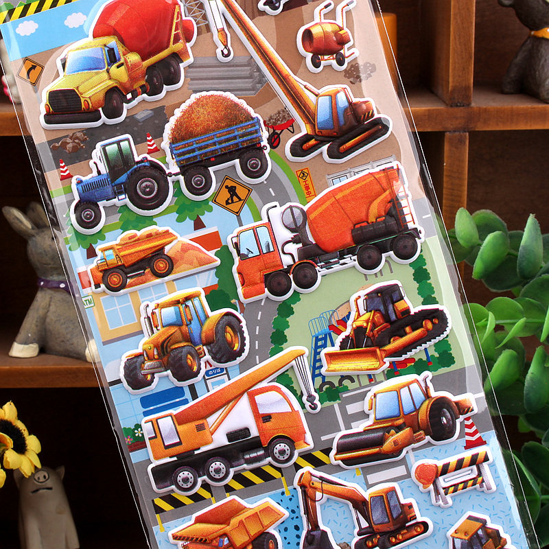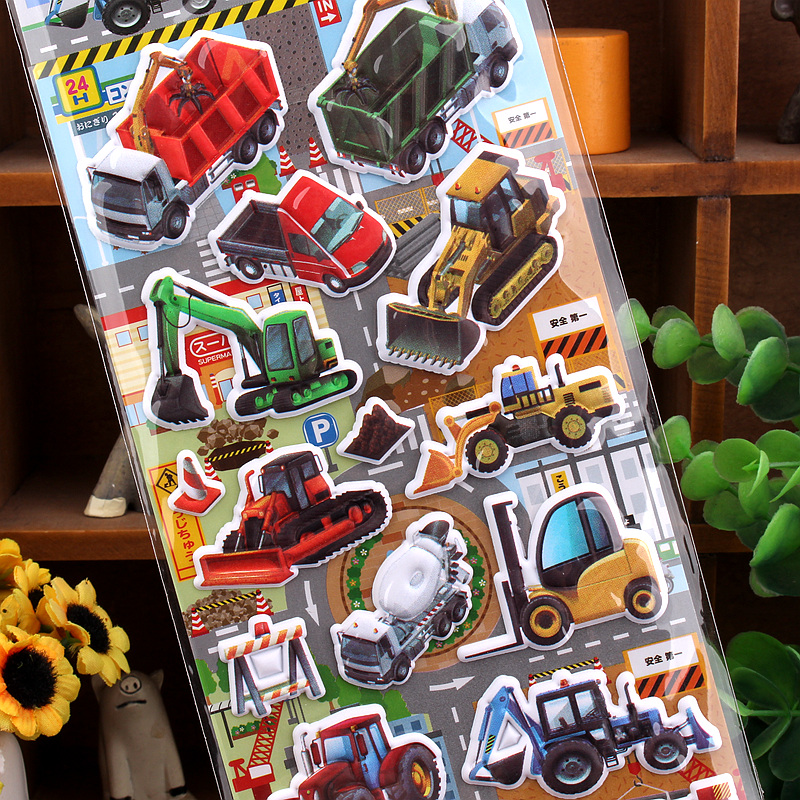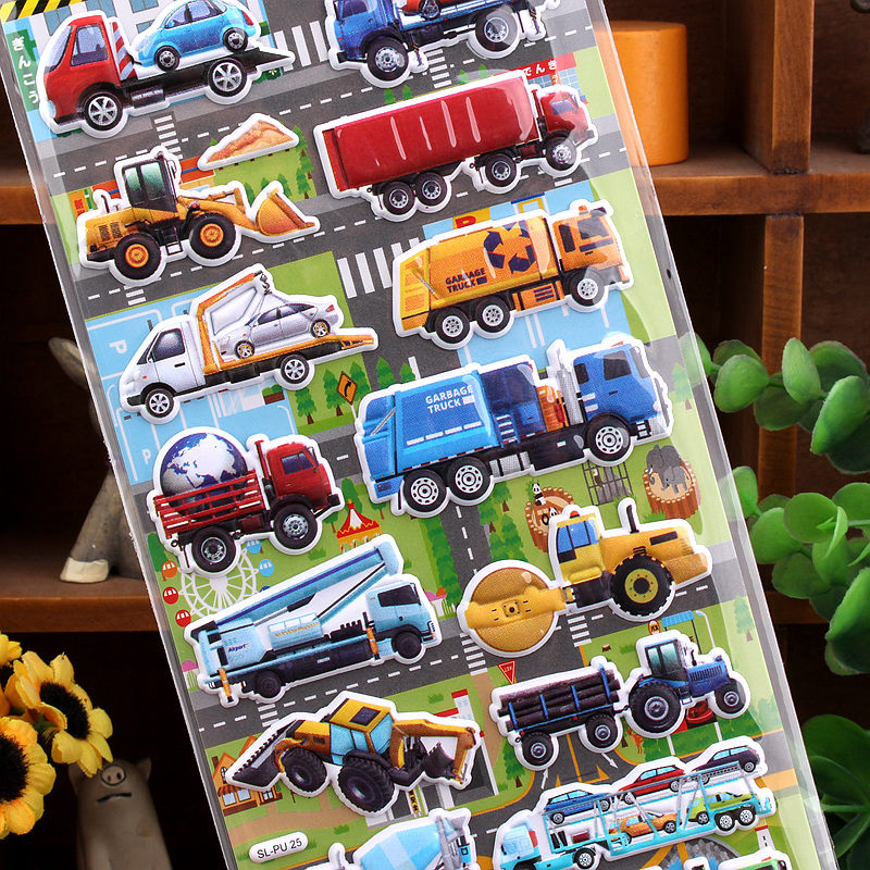 儿童立体小贴画 幼儿园奖励stickers 汽车工程车消防车泡泡贴纸