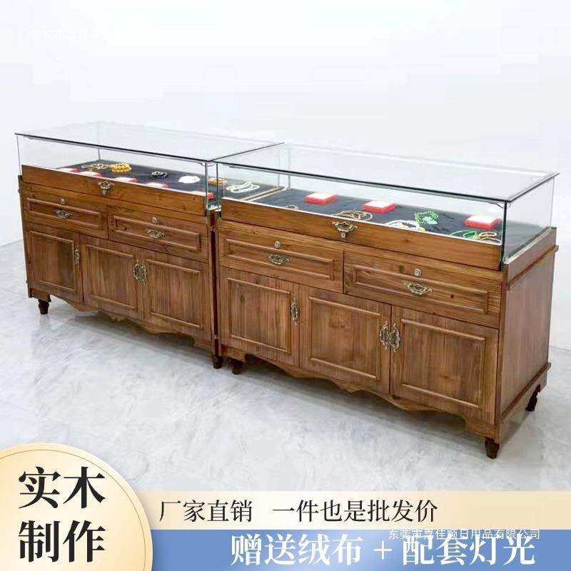 实木复古珠宝展示柜玉器翡翠古玩玻璃饰品首饰银饰展柜文物中岛柜