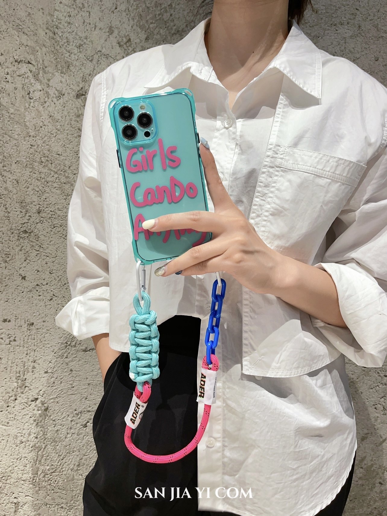 女人无所不能文字斜挎挂绳14Promax手机壳时尚手拎单肩背适用苹果iPhone13四孔12软壳侧背长绳防摔11夏日新款