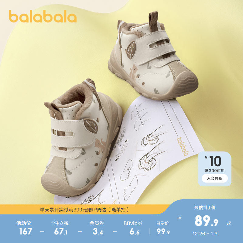 巴拉巴拉童鞋儿童学步鞋加绒防滑保暖婴儿鞋男童女童潮流冬新鞋子