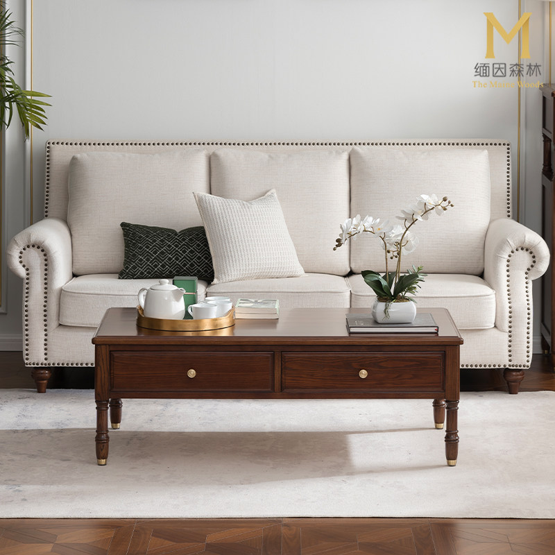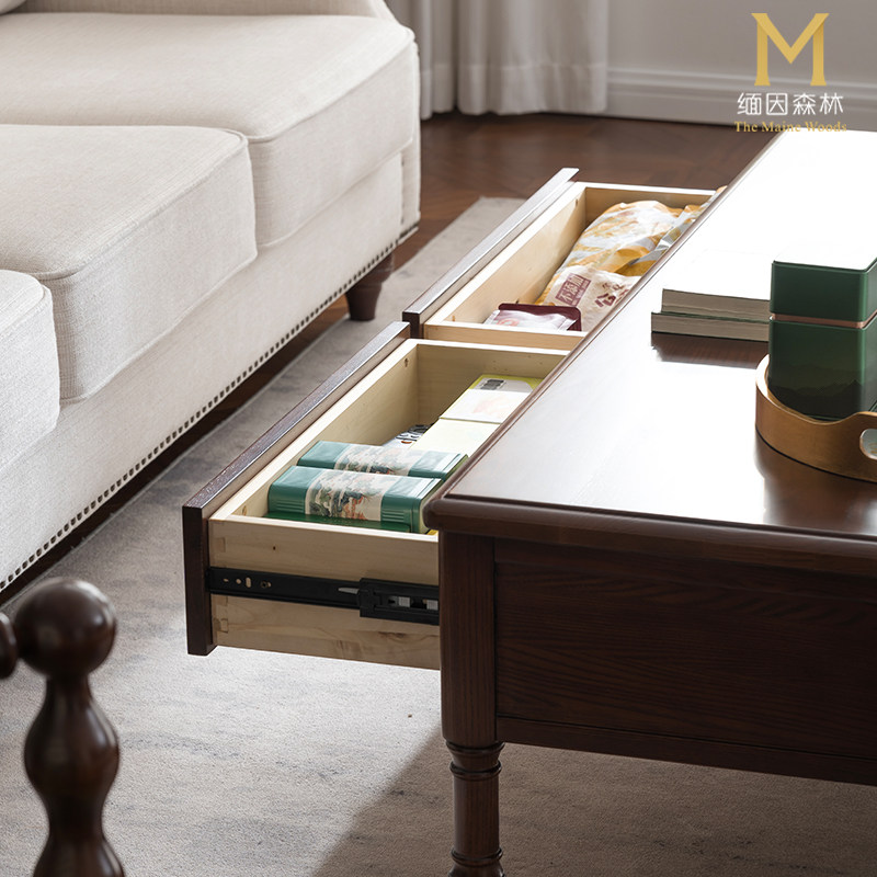 轻奢实木茶几抽屉现代美式全实木小户型家用新中式白蜡木缅因森林